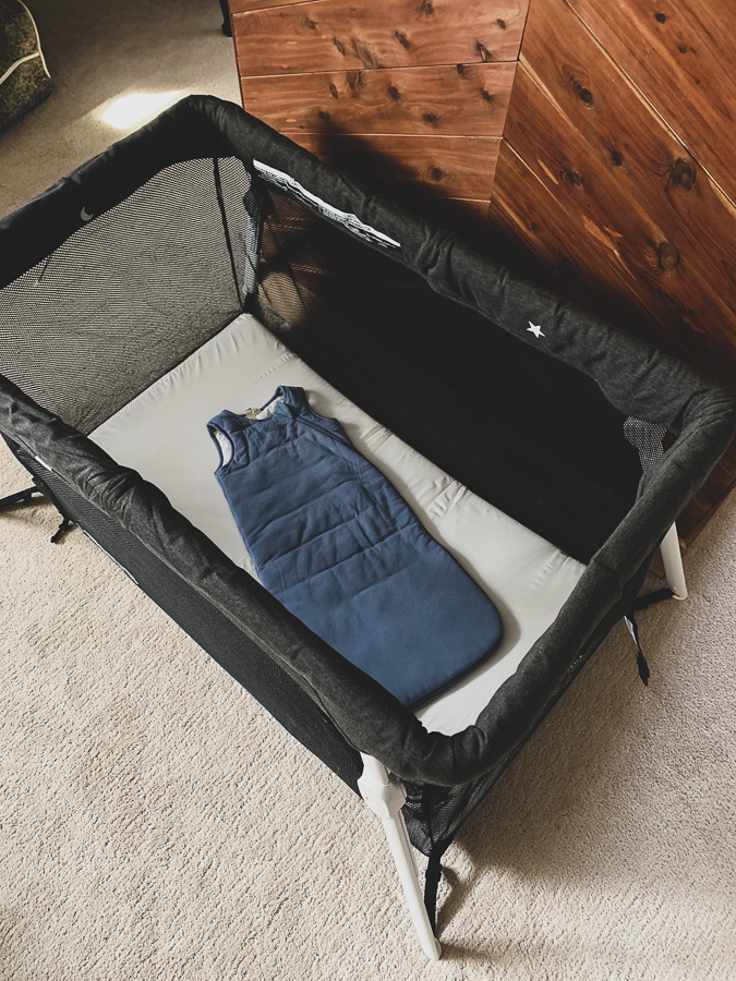 Birch got too big for his bassinest but he’s still waking up too much to sleep downstairs to his nursery all night, so this is our crib solution for the short term. I have so much to share on the sleep front, but I’m kind of waiting for us to solve our issues so I can share how it all went down. The short story is that the perfect storm of sleep regression hit us at 4 months and we’re still figuring out how to sleep again. We also LOVE the Kyte sleep sack that my sister gifted us! It’s our favorite one. So soft and easy to zip.