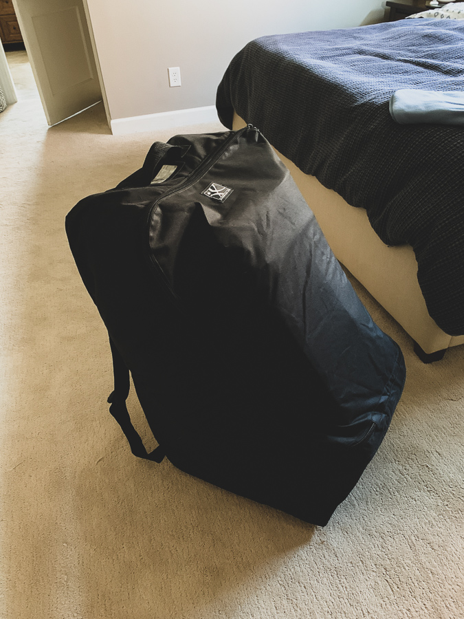I bought a new car seat bag (my old one was MIA!) to hold Birch’s Mesa and crossed my fingers the Lotus crib we bought would fit in there too. IT DID! The reason we are bringing the Lotus crib is that the resort does not offer cribs and renting a pack and play would cost over $100. It was cheaper just to bring our own. If it did not fit, our back up plan was to wear the crib on our back through security. Or just pay to check it.