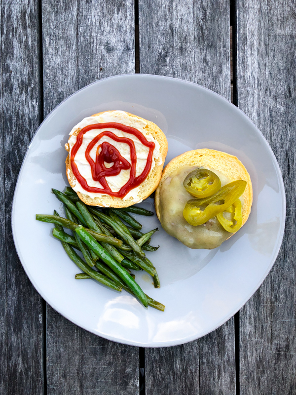 It’s so hard to tell what cravings are due to my change in hormones and which are due to the warmer spring weather. Burgers on the grill with green beans: