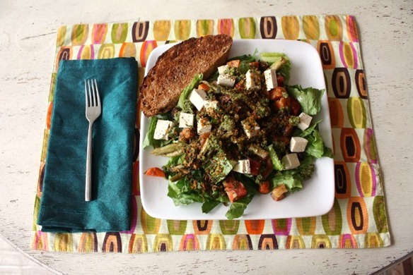 I had a similar lunch- salad w/ tofu and multi grain bread on the side. It was awesome!