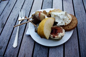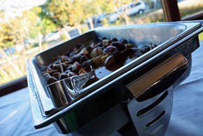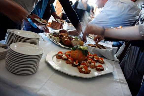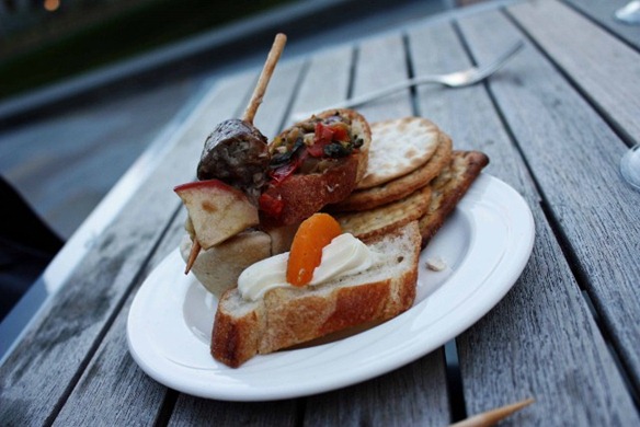 There was a spread of cheeses and crackers plus mini sweet potato pies, chicken skewers marinated in jam, local pork + apple skewers and bruschetta.