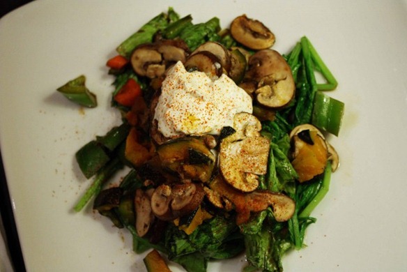 I probably would have been fine without anything else to eat, but Matt started in on half of our planned dinner. We were supposed to have whole wheat pasta with tofu, tomato, arugula, mushroom and eggplant.