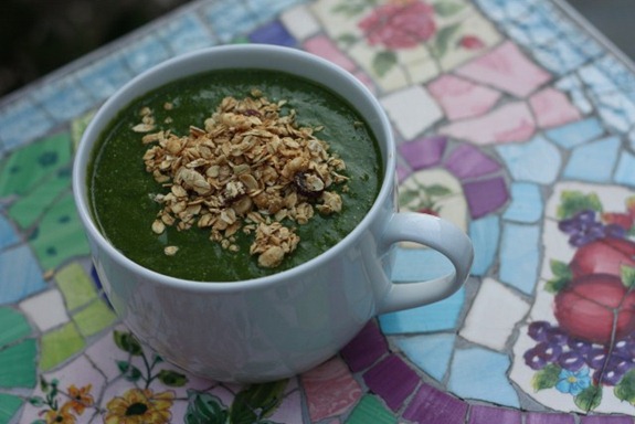 That smoothie in a bowl sounds so good! I’ll have to try one sometime. I make a killer potato kale soup, but I’ve never mixed greens with fruit.