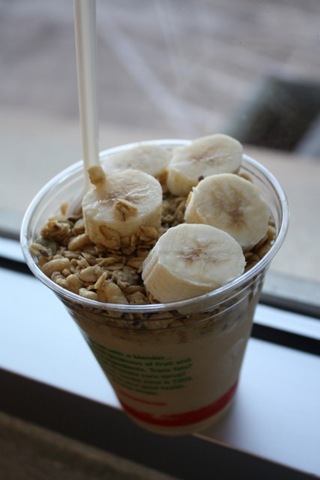 Today I branched out and got the Mango + Peach. I lost a banana off the top at one point, but my is this good!!
