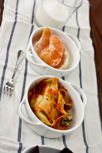Catriona sent me home with a serving of manicotti from Monday’s dinner – it’s filled with spinach, mushrooms, ricotta and sauce. Dinner foods for lunch taste so good!
