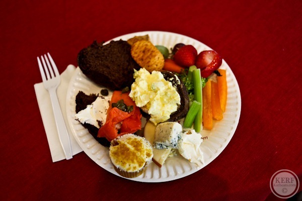 I had a taste of nearly everything and went back for seconds on veggies, a few crackers + cheese and a second mini cupcake!