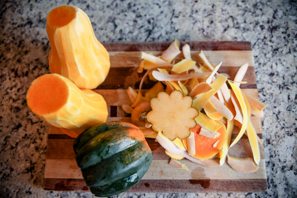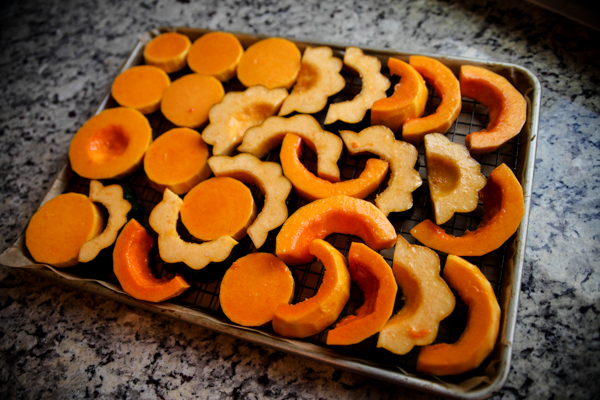 We made a mixture of 4 parts coconut, 1 part butter and 2 parts brown sugar and spread it out on the squash while they baked.