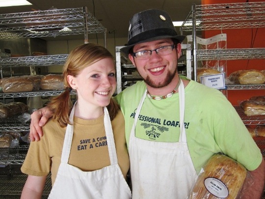 Yes, very clever! More bakeries should think of that!What does her shirt say – Save a Cow, Eat a Care..? GH has the best company tshirts.