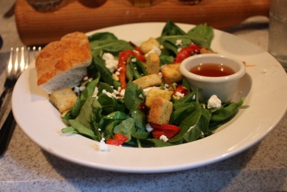 I started with the spinach salad complete with goat cheese and a nice little focaccia puff