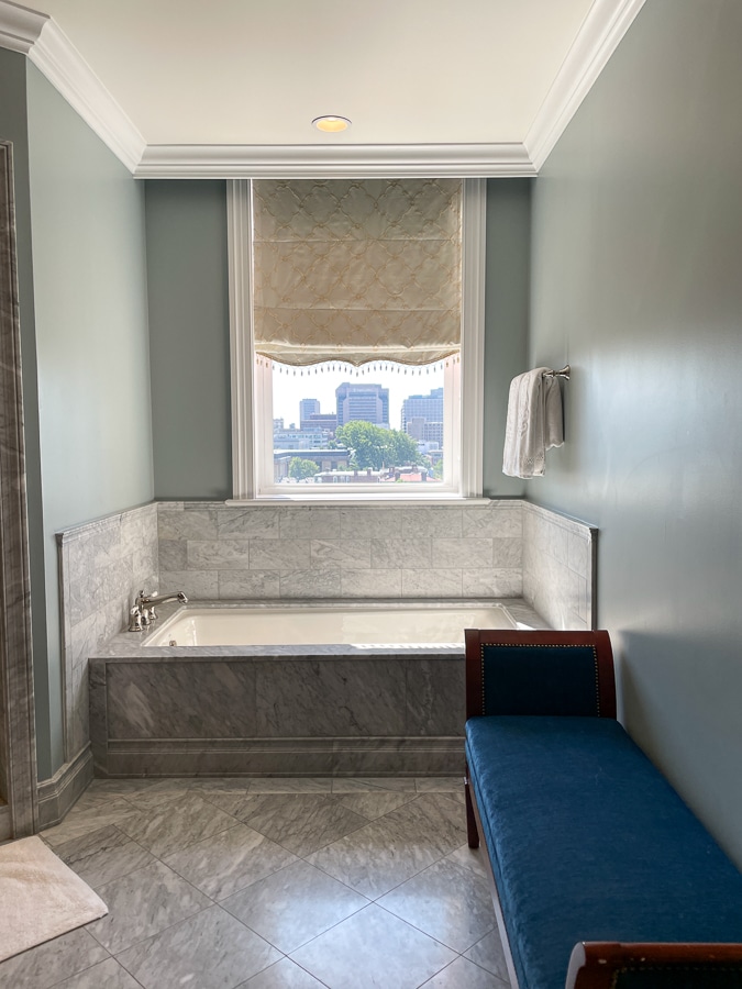 We booked a room at The Jefferson Hotel downtown. I was worried it might be a little fussy for us, but it was actually perfect! The service was outstanding, and our room was totally updated and comfortable.