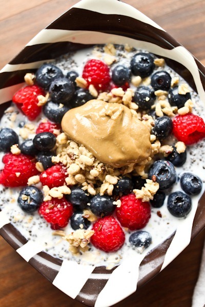 4. Add a tablespoon of hemp or chia seed, a teaspoon of cream cheese (need fats!) and serve with a splash of milk and fruit.
