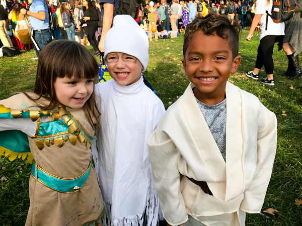 After I picked M up from school, we relaxed for a bit before getting back into costume to head to the University of Virginia lawn. Karen made Mazen’s costume this year, and he got a lot of compliments on his spooky tassels. He refused the white face paint we had planned, but we settled on some dark eyes.