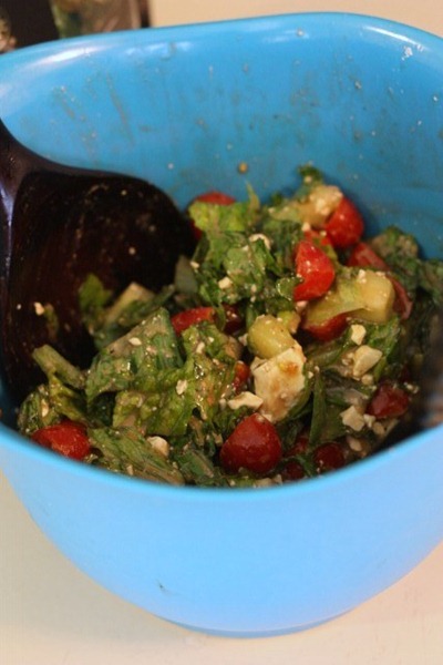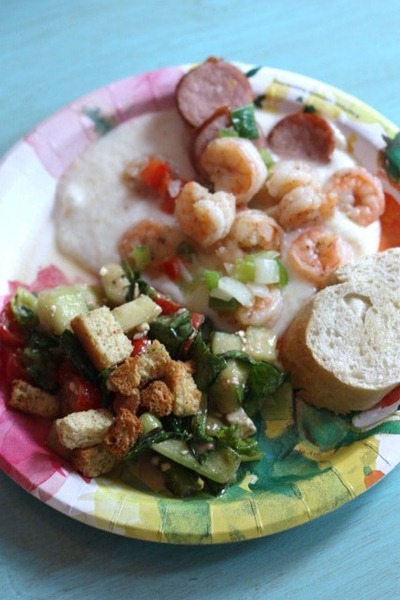 Bayley, our host, served some delicious shrimp + grits, with salad and bread.