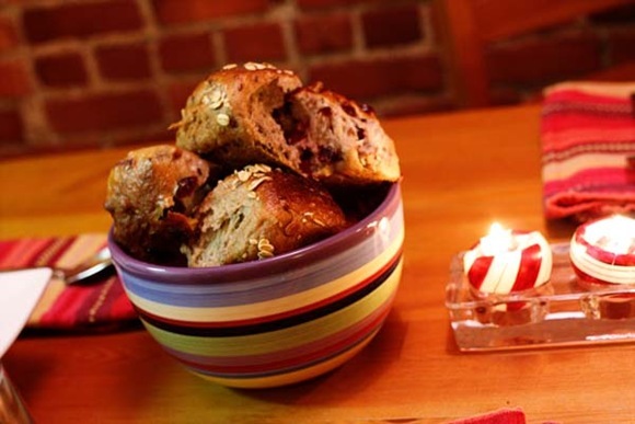 Those cranberry rolls look so good — but what I love are those peppermint candles! How cute!