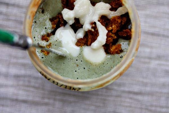 I love that you use the near-empty jars for your bowl. Talk about reuse! That all looks delicious. I made chocolate pumpkin cupcakes this morning but left a few as “muffins” 🙂