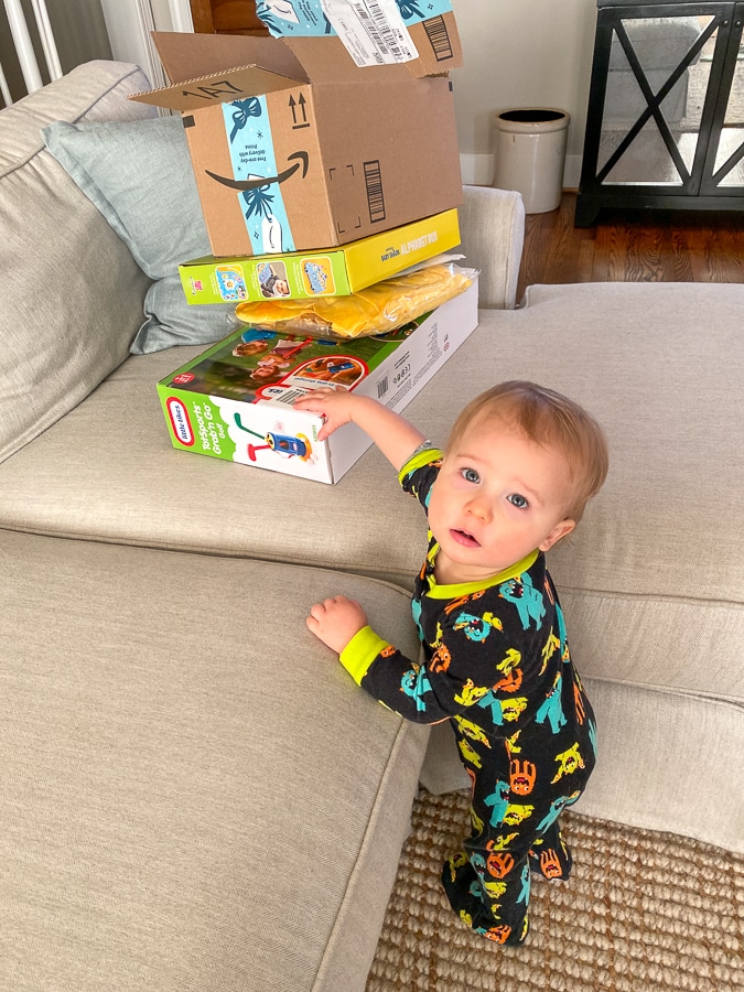 I brought some packages inside that arrived from Amazon. Somebody saw the bottom box and got a little too excited – oops!!! I appreciate the minimal packaging but the kids are watching! Spoiler alert: he’s getting a golf set for Christmas.