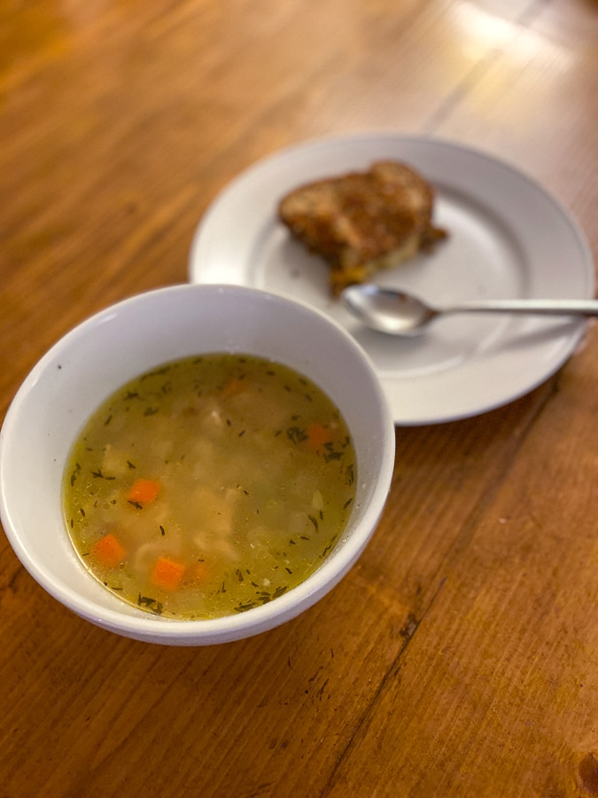 Chicken noodle alphabet soup + half a grilled cheese. Soup nice is a winter staple!