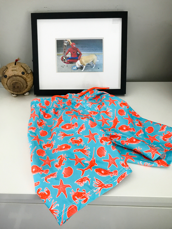 I did a little online shopping for Mazen last week and the cutest swim trunks came in the mail for him. These were a steal for only about $7. I love the neon! We tested them out at the pool all afternoon yesterday. I also bought him these shoes (GAP is always having 20-50% off sales) and they are super cute in person.