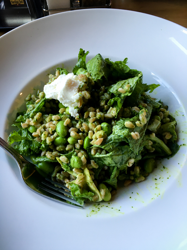 I loved the Farro Salad! Greens, farro, edamame, pesto, artichokes, and goat cheese.