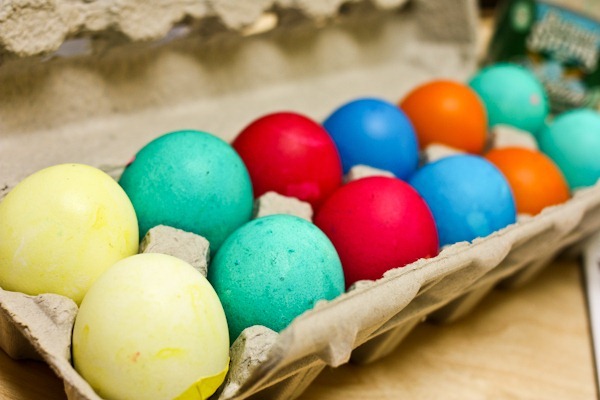 Love the vibrant egg colors! Hope you take some time to put your feet up off and on throughout the day!