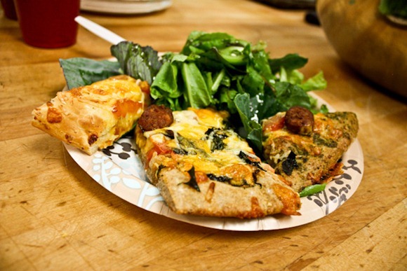 Super freshly baked pizza and a huge garden salad sounds like a dream for meeting food!