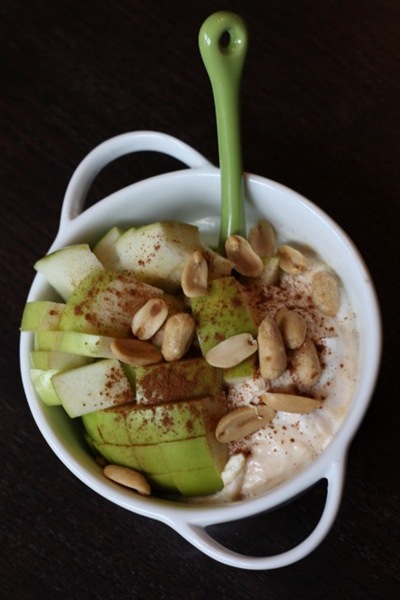 Okay that aerial shot of the yogurt/apple/peanut combo is total food porn. The camera was worth it!