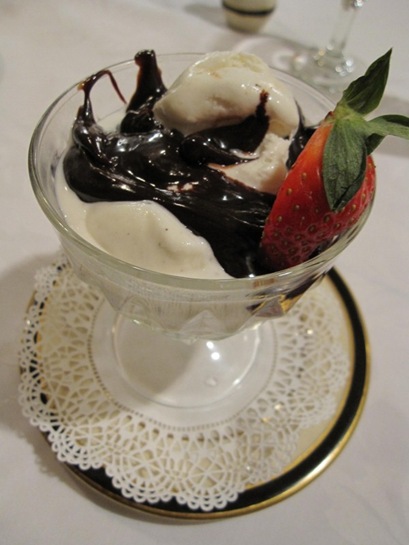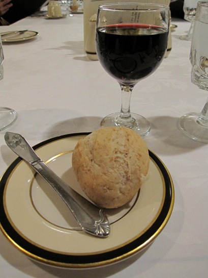 We dined in the seated portion of the dining room tonight. I started my meal with a half glass of wine and half a roll –