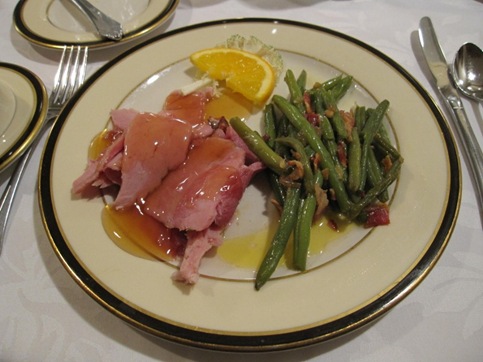For dinner I ordered Glazed Ham in a Southern Comfort Sauce. It was quite good! I could taste the kick of the alcohol. I ate half