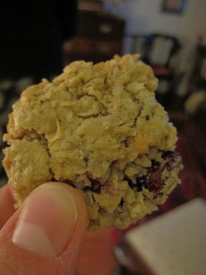 My aunt made me a batch of her famous secret recipe oatmeal cookies!! There’s no sharing this recipe – she says it’s completely top secret! I can guess that there’s at least oats, coconut and cranberries in them, but who knows what else!? They were really good, and they tasted so healthy! I had one and a half 🙂