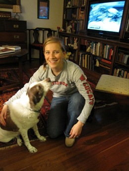 My cousin Mary Jane (aka Spud 🙂 ) with Smotey dressed in a scarf