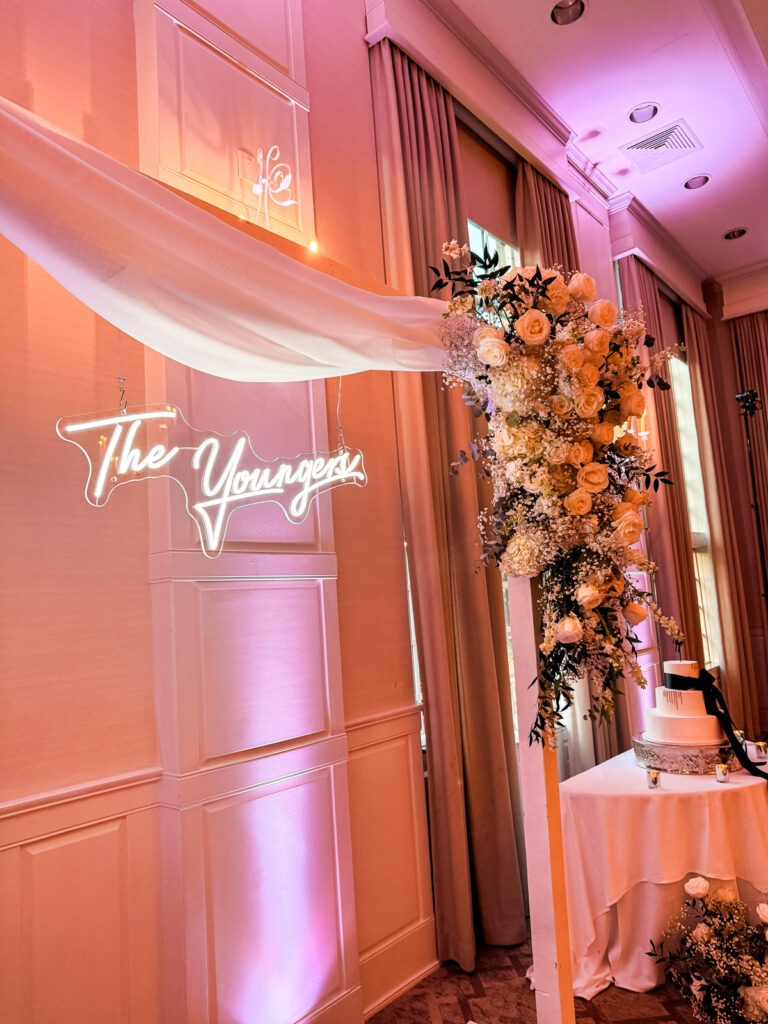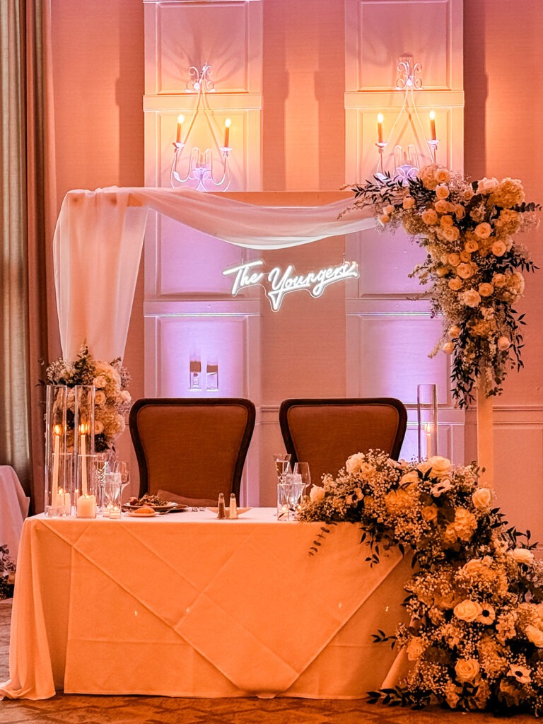 The reception was dressed to the nines with stunning flowers and a really great Youngers sign in the middle! It was so fun to share a last name with the couple.