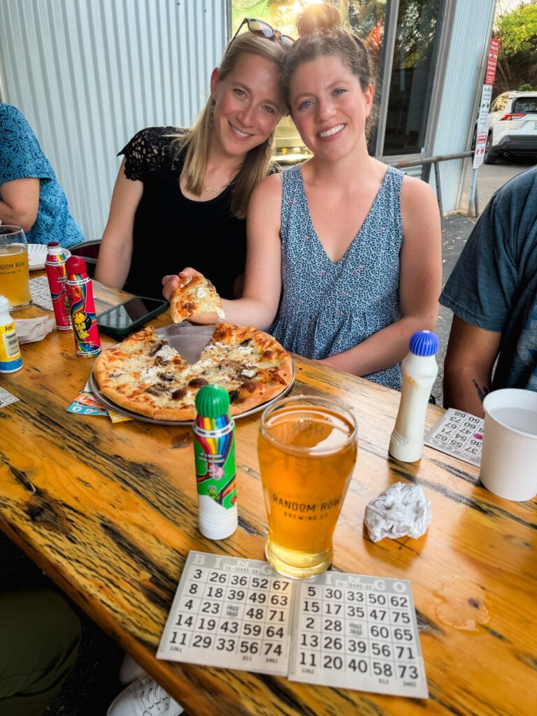 I spent last weekend with my parents and extended family celebrating my first cousin Nick’s wedding to Christy! The wedding was in Hamburg, New Jersey, at the Crystal Springs Resort. To make the 7 hour drive more fun, my parents came up to Cville the night before and we carpooled up to NJ (which meant I was a passenger princess in the backseat – thanks dad!) We went to bingo at Random Row the night before we left!