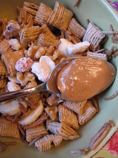 I make my cold cereal more interesting by mixing together a couple different kinds and mixing in some fruit.
