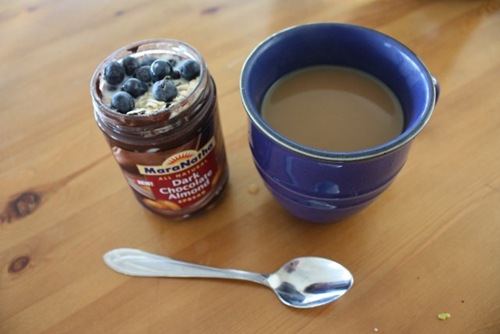 I’m taking breakfast in a jar – that was thankfully already 99% empty – to eat while we wait for the ferry.