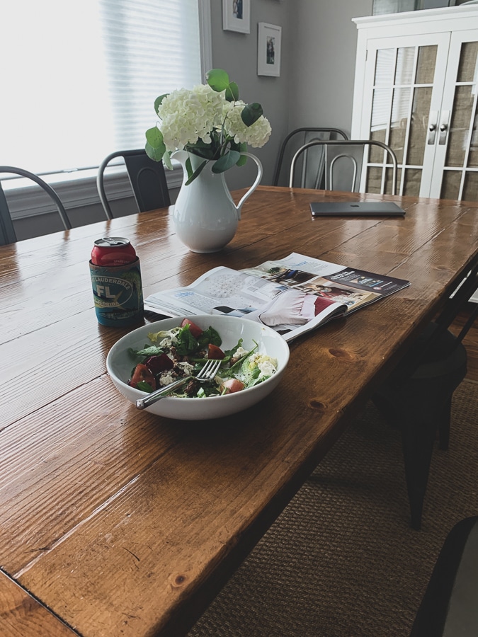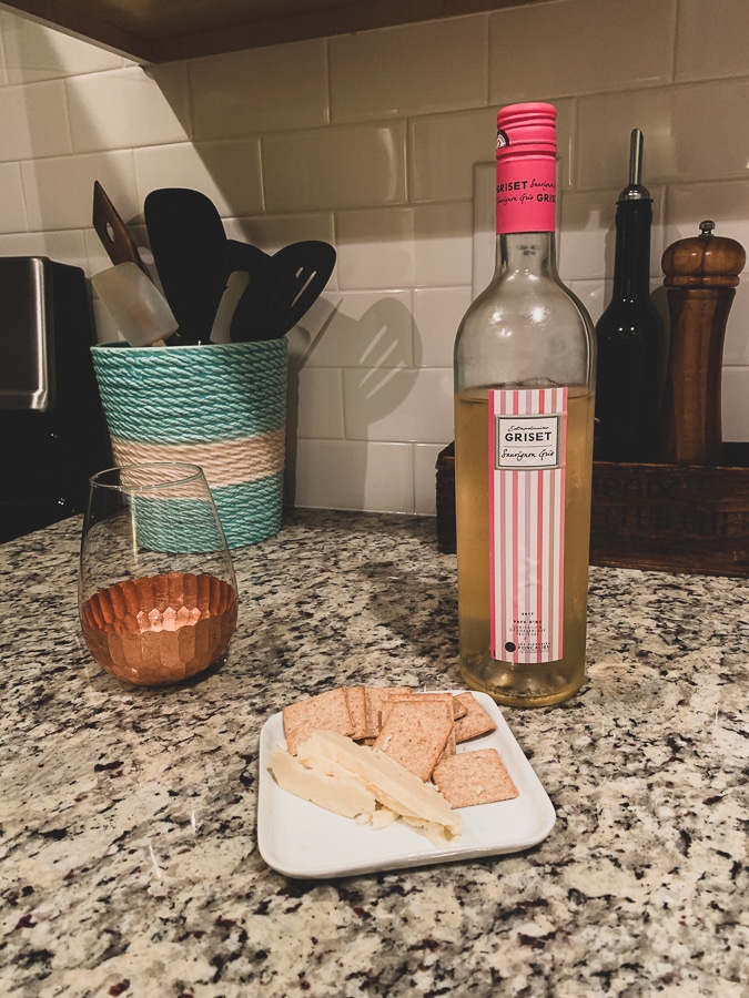 I was seriously still so full from lunch that the thought of a salad wasn’t appealing, so I literally had cheese, crackers and a glass of wine for dinner. Intuitive eating at its finest (or lowest – haha)