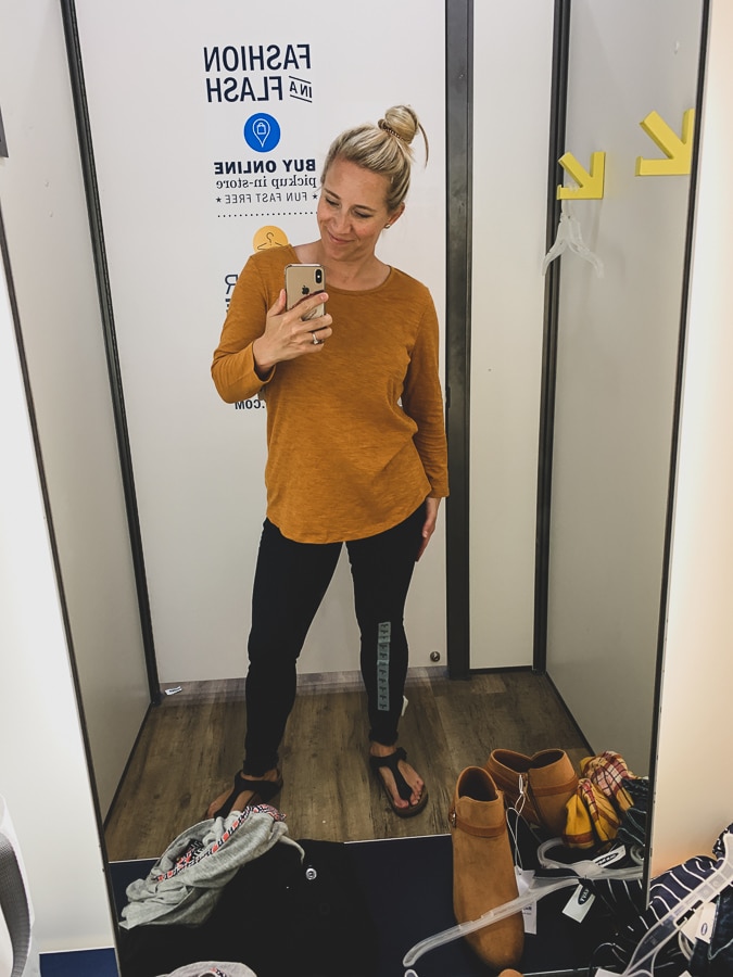 First stop was Athleta where I found a dark wash pair of their Sculptek jeans almost half off! They are even hemming them for free. They are high rise and fit like a glove.