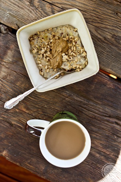 Matt’s whipped banana oatmeal topped with Nature’s Plus granola and sunflower buttah