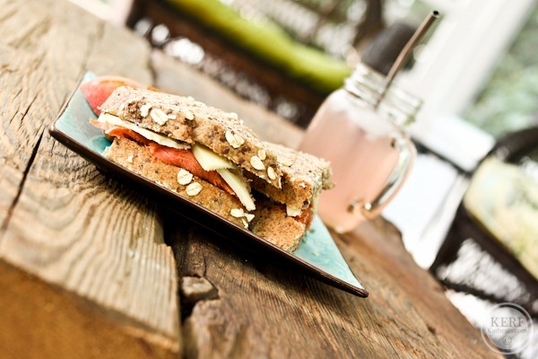 An AMAZING sandwich of smoked salmon, sharp white cheddar and capers on Cville Crunch. The breast [you know what’s on my mind