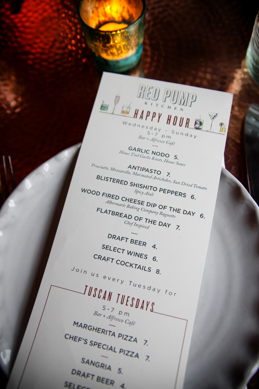 Red Pump Kitchen is one of my favorite downtown restaurants. Luckily they seem to like me back because they invited me in to write about their new happy hour menu! On Wednesday through Sunday from 5-7 p.m you can get small plates and drinks specials at the bar or on the patio.