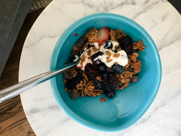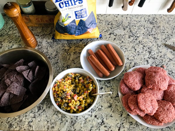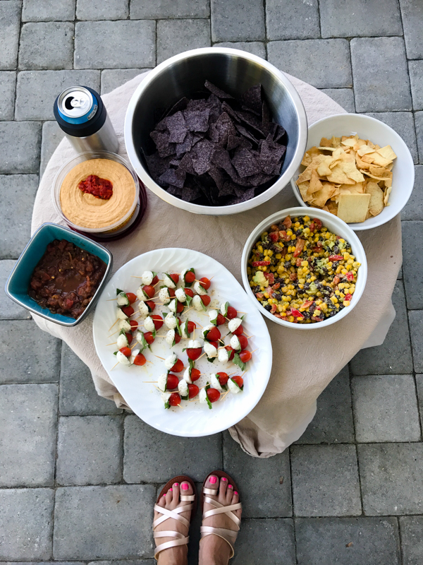 T and I went to a friends’ community pool to relax for a few hours before coming home for some party prep, including making Thomas’s famous Scooped Up Party Dip!
