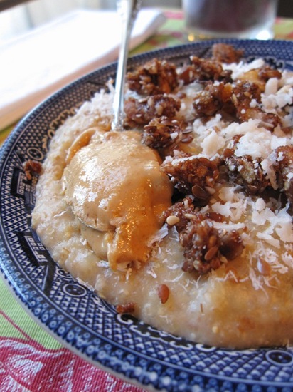 Have you tried Bob’s Red Mill Might Tasty Hot Cereal? I’m a big fan — it’s gluten-free and made from brown rice, corn, and sorghum. I love the texture and it’s filling but not heavy. I have mine with almond meal, flaxseed, agave nectar, and vanilla extract.