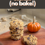 These healthy pumpkin cookies are no bake and require just a few minutes to assemble and about 30 minutes to chill. With oats and dark chocolate chips, you’ll find the perfect blend of healthy and delicious!