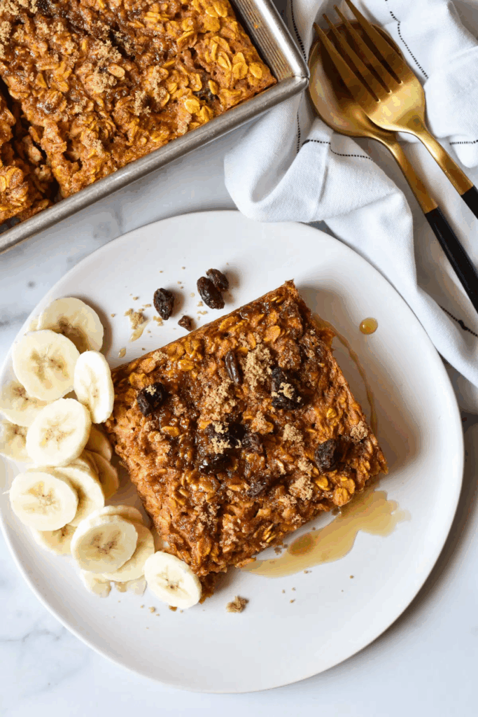 A classic baked oatmeal recipe gets jazzed up for fall breakfast. Perfect for meal prep.