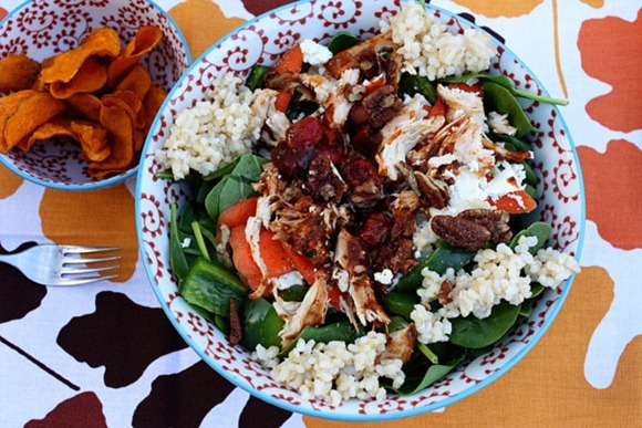 I love making salads with leftovers from dinner!