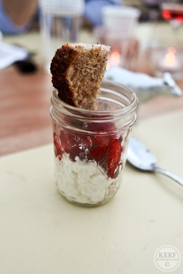 For dessert we had freshly made ricotta with macerated strawberries, honey, lavender and polenta bread. The ricotta was made by Twenty Paces, a new farm run by one of our former employees – Melanie!