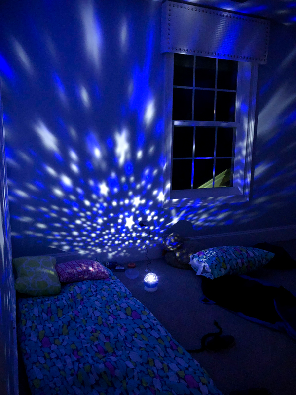 My mom also bought him this star night light constellation projector that turns your room into a planetarium-like scene with stars. It rotates the stars around and changes colors – it’s so cool!
