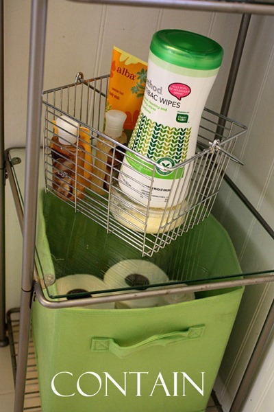 I am a hider when it comes to bathroom stuff. I try to keep the linens folded and neat, but it is a losing battle when the kids get in there. So, I figure if it is, at the very least hidden, it is better than being a mess everywhere!