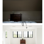The second most dramatic part of our home renovation was in our primary bedroom! While the kickstart of the reno was on the kitchen, we knew we wanted to add a dormer up here for some windows off the back of the house. And then we ended up gutting the whole thing! The dormer is huge and spans the entire back of the house, including the primary bathroom. The difference in the before and afters is mind-blowing to me! We did all new paint, carpet, closets, a new roof, and turned the roof deck we never used over the garage into a storage room. We also re-oriented our bed on the new wall that we built to enclose the fireplace with the goal of better utilizing the space.