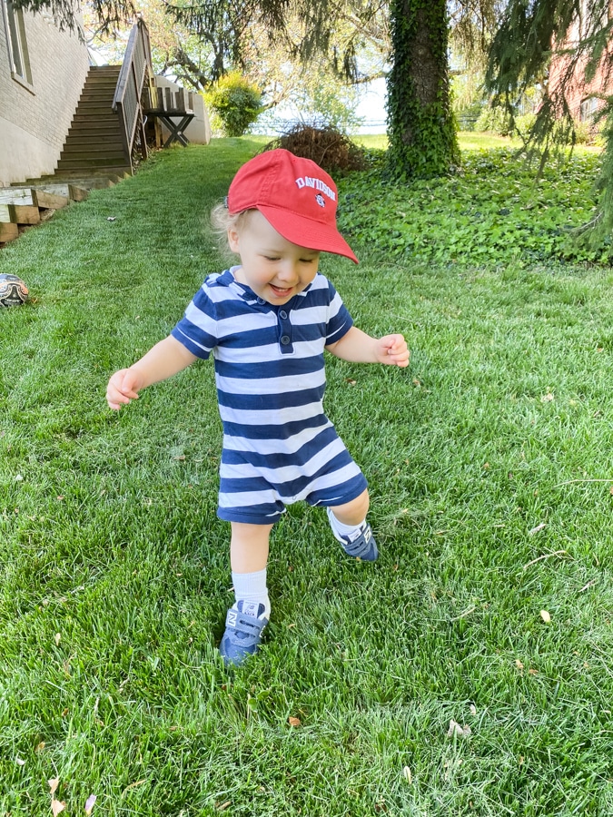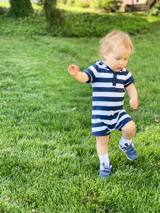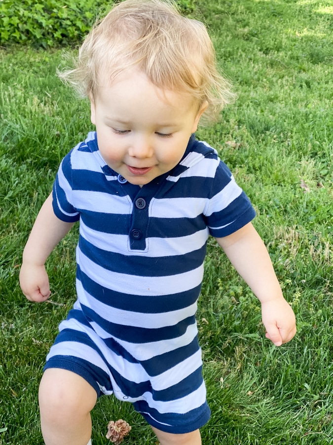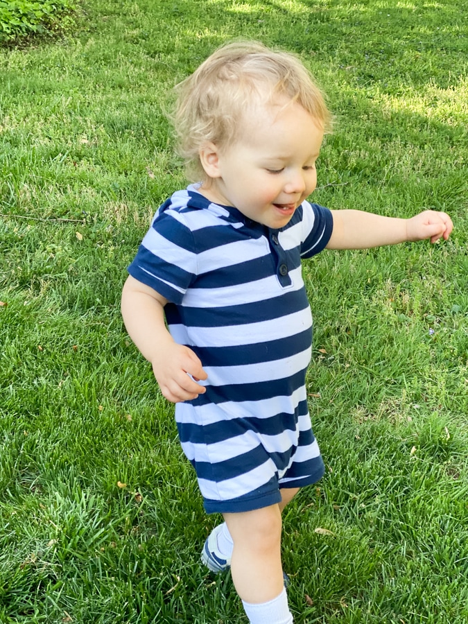 The grass is SO green. And I love his little expression. That was Mazen’s old outfit! I need to buy home some summery shoes. What should I get? Natives? Crocs?