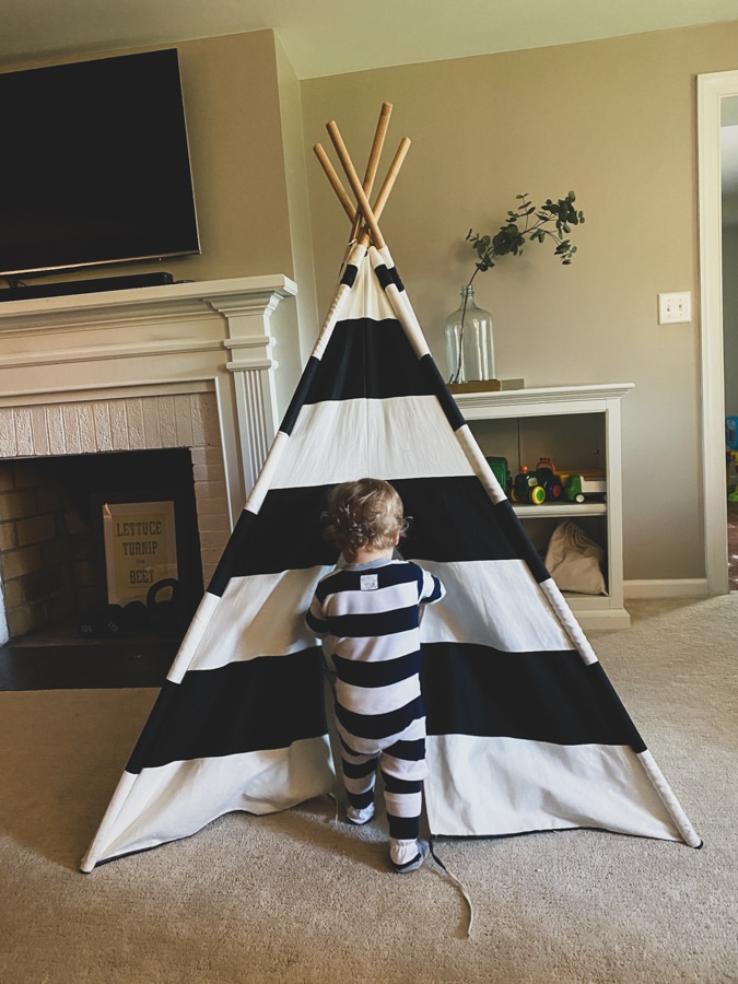 Our teepee has been a saving grace on rainy days over here! Our 1.5 year old and 4 year old both LOVE it! It’s even more fun when you build a fort to connect to it haha!